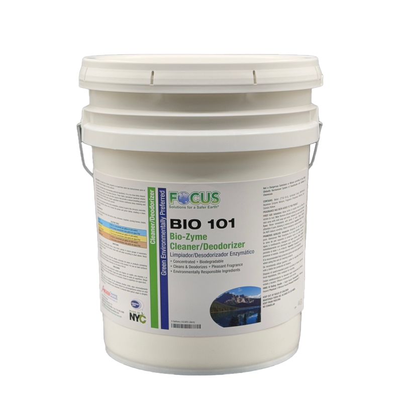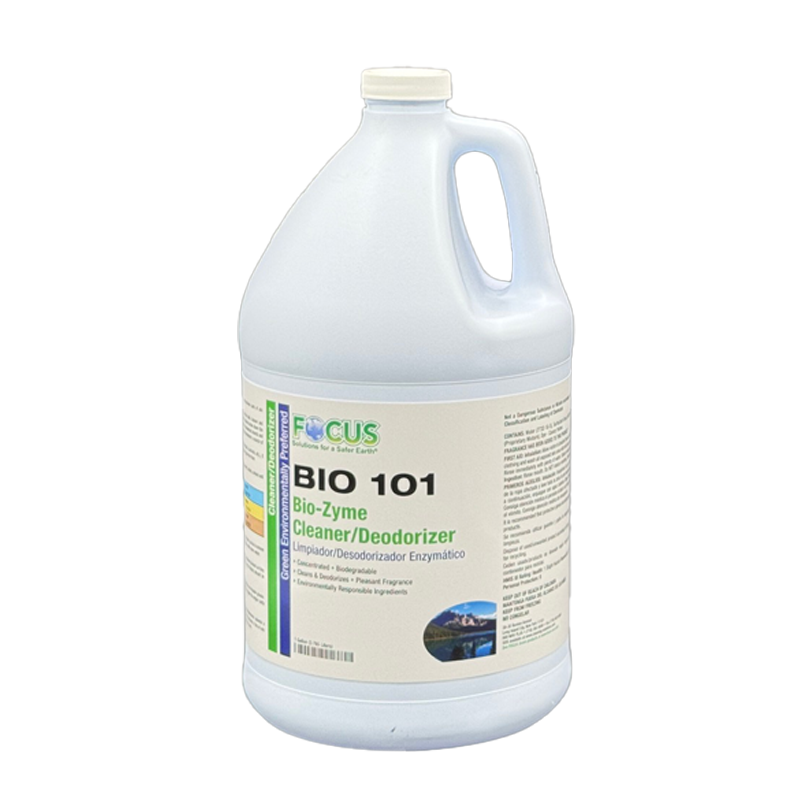 BIO 101 Bio-zyme Cleaner/Deodorizer is formulated with environmentally preferred ingredients. It is a no-rinse pleasantly scented daily cleaner and Deodorizer that contains highly active bacteria. These specialized bacterial strains break down the grease, grime, uric salts and other organics that provide a natural breeding ground for unwanted insects and other pests. Excellent for use restrooms and compactor areas. Regular application ensures continuous deep cleaning and deodorization whenever a source of soil is present. Light Yellow Liquid, Mint Odor.