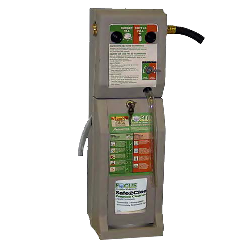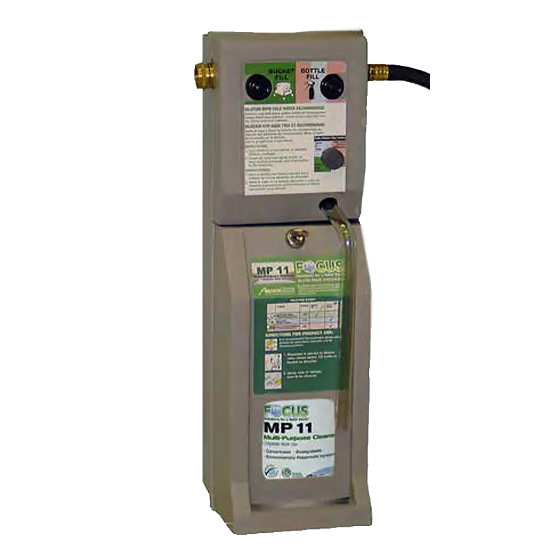 Blend Mate wall mounted dispensers are for automatic dilution/metering of our concentrated cleaners into secondary containers (32 oz. bottle or bucket fill) in ready to use form. Made of gray, high density plastic, each dispenser is set with the appropriate metering tips to provide accurate end-use dilution of our 4 most popular Focus formulas: MP 11, GC 55, TC 66 and Safe 2 Clean. These units are shipped with 2 locking keys, wall mounting hardware and water inlet hose. Up to 4 dispensers, holding a lockable 1 gallon container each, can be linked for connection to a single water source.