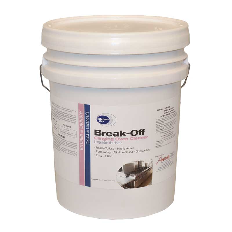 A ready to use, highly active, penetrating alkaline-based clinging oven and grill cleaner formulated with sodium hydroxide, water-based solvents and deep penetrating surfactants. Break-Off quickly removes burnt-on carbon, grease, oils and fats from ovens, grills, hoods, vents, deep-fat fryers, griddles, etc. It is easily applied by brushing, spraying, or wiping on surfaces to be cleaned. Cloudy, Viscous Liquid, Slight Odor.
