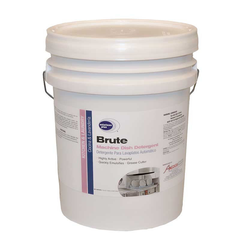 A highly active powerful formulation which combines caustic, low foaming surfactants, emulsifiers, alkaline builders and sequestrants. Brute Machine Dish Detergent quickly emulsifies and removes animal fat, grease, oil, food and protein based soils from pots, pans, dishes, glasses, utensils, etc. This product has been designed for use in high or low temperature dishwashing equipment. Clear Colorless Liquid, Slight Odor