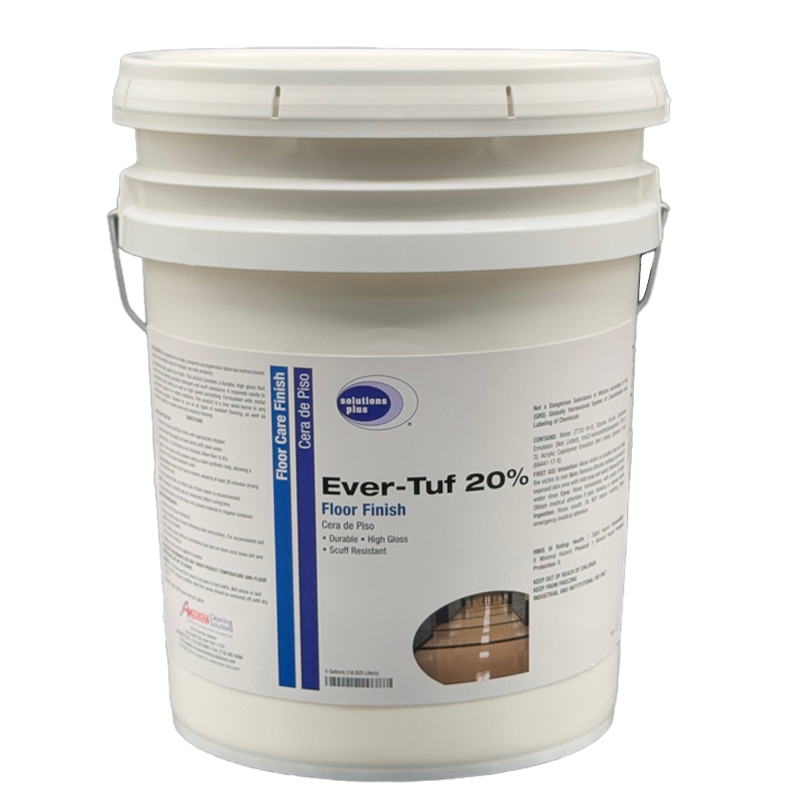 Ever-Tuf provides a durable, high gloss that levels well and exhibits excellent detergent and scuff resistance. It responds easily to conventional spray buffing as well as high speed burnishing. This product is formulated with metal cross linked polymers for added resilience. Ever-Tuf is a true work-horse in any maintenance program. Suitable for use on all types of resilient flooring, as well as varnished, painted or sealed wood and masonry flooring. Coverage: 2000 – 2500 square feet per gallon. Opaque, Off-White Liquid, Acrylic Odor.