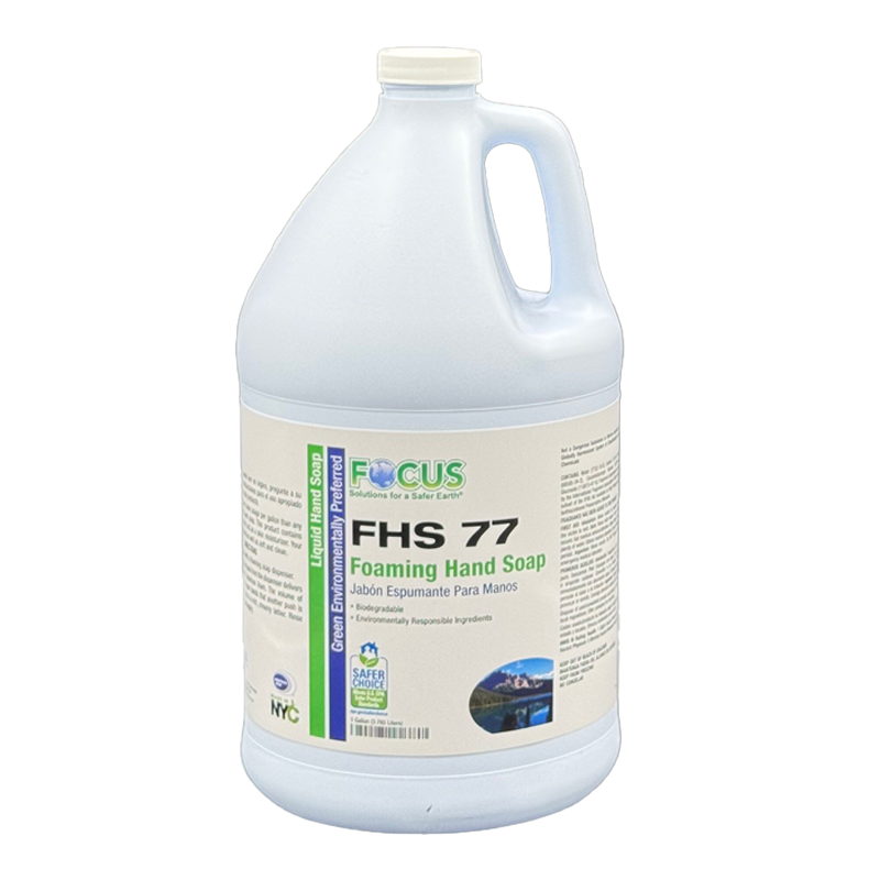 A gentle, water-thin, foaming hand soap made from environmentally preferred ingredients. FHS 77 has a light green apple scent that produces a rich creamy lather which leaves hands clean and soft without irritation. Clear Liquid, Green Apple Odor.