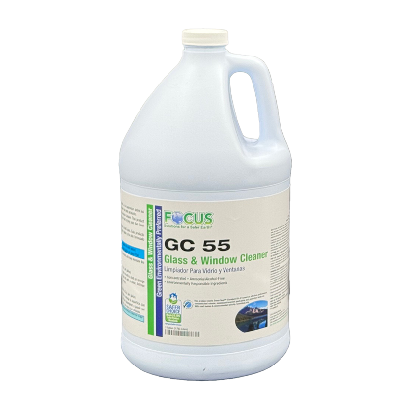 A highly concentrated glass, window and multi-purpose cleaner. This product is certified under the GS-37 Green Seal™ Standard. GC 55 Glass & Window Cleaner is non-ammoniated, alcohol-free, non-streaking and fast drying. It contains no fragrance or dye. GC 55 Glass & Window Cleaner has been formulated with biodegradable surfactants and other naturally derived ingredients. Clear Liquid, No Odor.