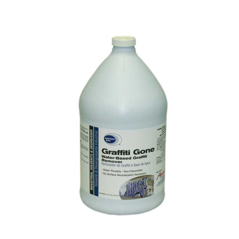 A high viscosity, water-based graffiti, urethane, paint and varnish remover formulation containing no harmful methylene chloride. Graffiti Gone can be used on metal, concrete, brick, marble, stone, soft woods and plaster. This fast acting formula penetrates and softens multiple coats for easy removal. Clear, Semi-Viscous Liquid, Solvent Odor.