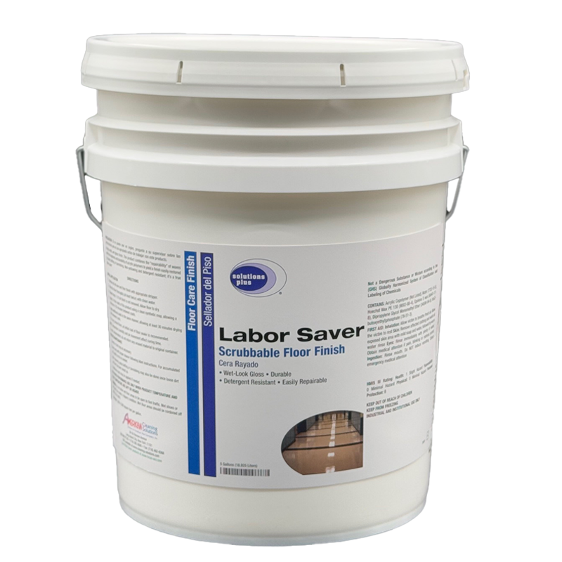 A high solids, wet-look gloss finish. Labor Saver combines the “repairability” of waxes with the toughness and durability of acrylic polymers to yield a finish easily restored by spray buffing or burnishing. Non-yellowing and detergent resistant; it’s a true labor saver! Opaque, Off-White Liquid, Acrylic Odor.