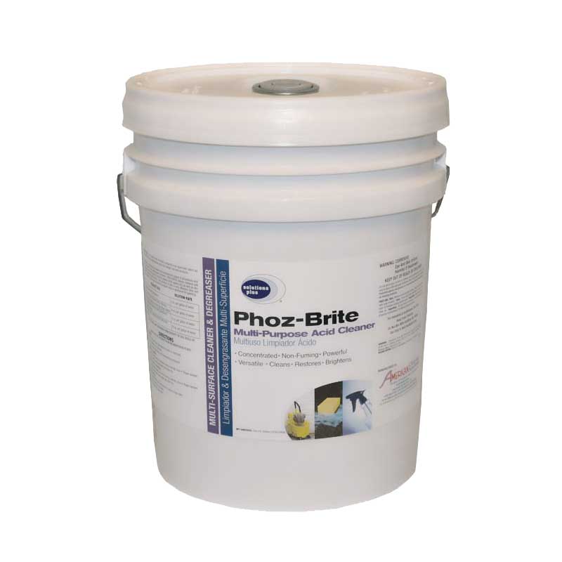 A versatile, non-fuming formulation that combines the power of phosphoric acid with surfactants and water-based solvents. Phoz-Brite cleans, restores and brightens ceramic tile, grout, concrete, pavers, brick, quarry tile, as well as aluminum and other soft metals. It’s also a very effective lime and scale remover.