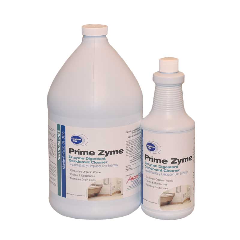A “natural” solution for cleaning & maintaining drain lines and controlling malodors. Prime Zyme is a bacterial enzyme based formulation that is designed to digest and eliminate organic stains, soils and odors found in bathrooms, kitchens, garbage collection areas, kennels, etc.