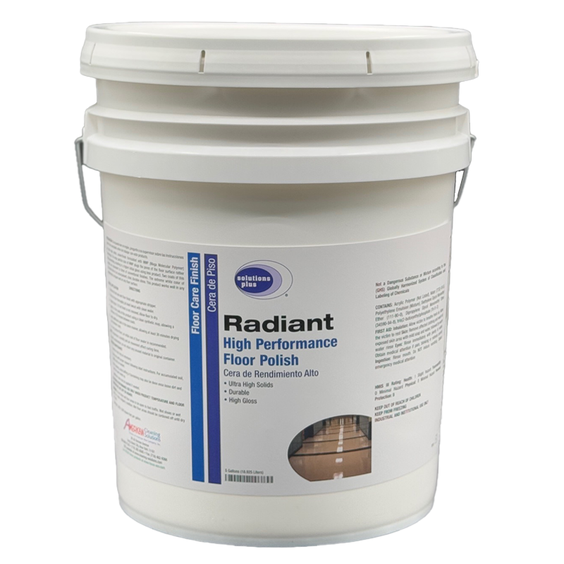 An ultra-high solids, sealer/finish formulated with MMP (Mega Molecular Polymer) technology. The large particle size of MMP plugs the pores of the floor surface rather than penetrating, resulting in a higher initial gloss while using less product. Two coats of Radiant are equivalent to three of conventional finishes. The extreme white color of this finish dries to an unsurpassed, clear, durable shine. Radiant works well in any maintenance program and on any floor surface. An extra added feature is a pleasant Summer Breeze fragrance. Opaque, White Liquid, Summer Breeze Odor.